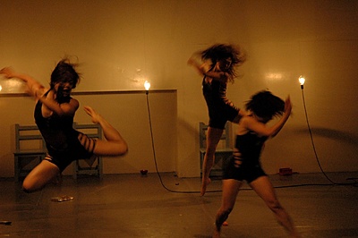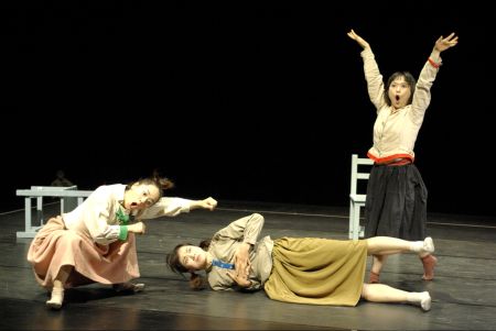 First, I tried to use my “conventional” way to interpret the “language” of the play but I failed. The play began with the “three sisters” suggestive daily movement, which implied they were doing daily activity such as cooking, cleaning, and other household duties. And yet, these movements were in intensive and highly energetic form which cast a strong contrast to the activities they were presenting. I used the word “suggestive” is because its intention was clearly not to take our daily life as elements into sublimation like we used to see in contemporary dance, rather it was an exaggerated representation of life with artistic choice. And the choice here, expressed by the three actors inexhaustible dance movement, were the anger towards the seemingly meaningless life routine and the anguish of reassuring ourselves to delve into that routine again. The play followed the above logic straightforwardly, in which the three sisters allow their anger to explode and transform themselves from housewife dresses to sadomasochism (SM) suits and back to dresses again followed by a key TV tag lines of the 70’s – “Life is beautiful, we should cherish everyday”(accordingly to my vague memory). Just when you thought the play would end here, director Hiroshi Koike, left us a haunting image of one of the sister’s clowning face and then…black out…