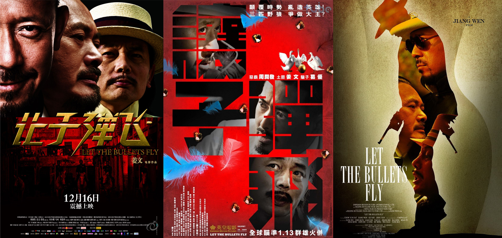 甫一開始,電影便以其名的一句對白開始:先是姜文的鎗管瞄準著路軌上行走中的蒸氣火車(註:蒸氣火車同時被6-8隻馬拖拉著),一連串鎗聲過後,鏡頭再轉到火車,然而甚麽事也沒發生,他的兄弟問道:「沒打中?」姜文悠然地答道:「讓子彈飛一會兒吧!」,然後,拖拉著的6-8隻馬分散地逃走,觀眾這才發現他射中的是馬拉著火車的馬韁。這句對白若用現代英語翻過來,那應是「Wait and see」吧。